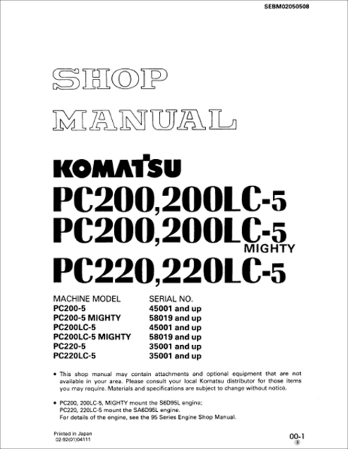 In this Komatsu PC200-5 Mighty service manual you will find: