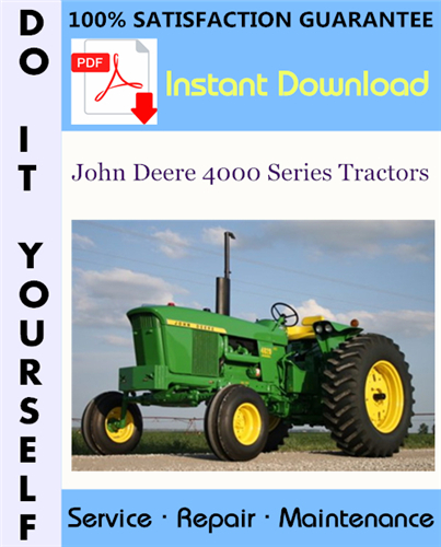 This is the COMPLETE factory Service Repair Manual for the John Deere 4000 Series Tractors. This manual is very detailed and contains information and data to this model. has specs, diagrams, and actual real photo illustrations, and schemes. which give you complete step by step operations on repair, assembly, disassembly, Diagnosing, servicing, technical maintenance & troubleshooting procedures for your machine.