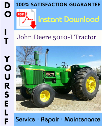 This is the COMPLETE factory Service Repair Manual for the John Deere 5010-I Tractor. This manual is very detailed and contains information and data to this model. has specs, diagrams, and actual real photo illustrations, and schemes. which give you complete step by step operations on repair, assembly, disassembly, Diagnosing, servicing, technical maintenance & troubleshooting procedures for your machine.