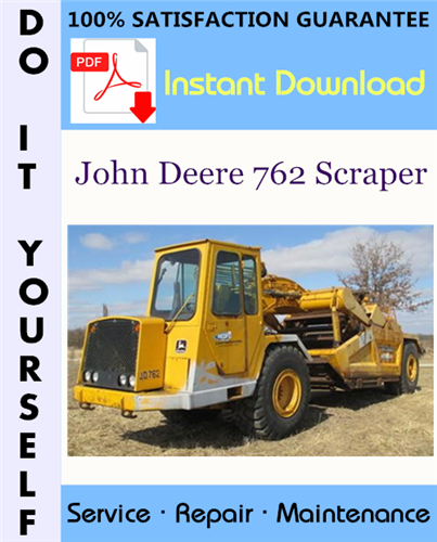 This is the COMPLETE factory Technical Manual for the John Deere 762 Scraper. This manual is very detailed and contains information and data to this model. has specs, diagrams, and actual real photo illustrations, and schemes. which give you complete step by step operations on repair, assembly, disassembly, Diagnosing, servicing, technical maintenance & troubleshooting procedures for your machine.