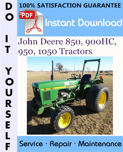 This is the COMPLETE factory Technical Manual for the John Deere 850, 900HC, 950, 1050 Tractors. This manual is very detailed and contains information and data to this model. has specs, diagrams, and actual real photo illustrations, and schemes. which give you complete step by step operations on repair, assembly, disassembly, Diagnosing, servicing, technical maintenance & troubleshooting procedures for your machine.