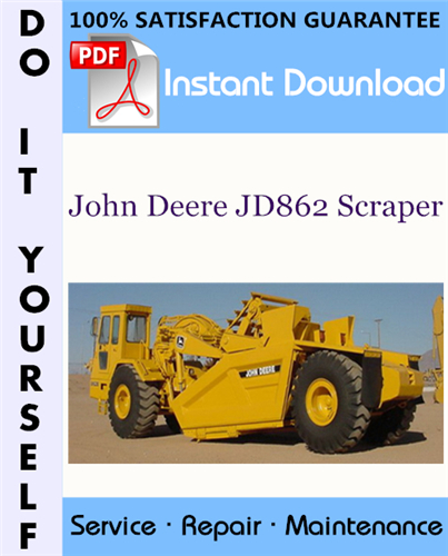This is the COMPLETE factory Technical Manual for the John Deere JD862 Scraper. This manual is very detailed and contains information and data to this model. has specs, diagrams, and actual real photo illustrations, and schemes. which give you complete step by step operations on repair, assembly, disassembly, Diagnosing, servicing, technical maintenance & troubleshooting procedures for your machine.