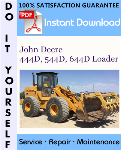 This is the COMPLETE factory Repair Technical Manual for the John Deere 444D, 544D, 644D Loader. This manual is very detailed and contains information and data to this model. has specs, diagrams, and actual real photo illustrations, and schemes. which give you complete step by step operations on repair, assembly, disassembly, Diagnosing, servicing, technical maintenance & troubleshooting procedures for your machine.