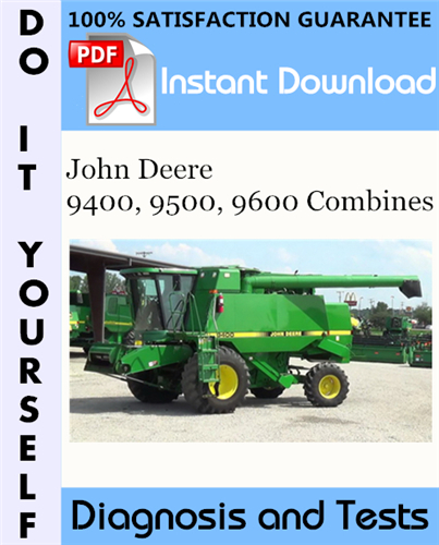 This is the COMPLETE factory Diagnosis and Tests Technical Manual for the John Deere 9400, 9500, 9600 Combines. This manual contains detailed Diagnosis and tests information, technical service instructions, fitting instructions, technical specifications, illustrations and diagrams, step by step instructions, troubleshoot and other additional information for your machine.