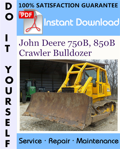 This is the COMPLETE factory Repair Technical Manual for the John Deere 750B, 850B Crawler Bulldozer. This manual is very detailed and contains information and data to this model. has specs, diagrams, and actual real photo illustrations, and schemes. which give you complete step by step operations on repair, assembly, disassembly, Diagnosing, servicing, technical maintenance & troubleshooting procedures for your machine.