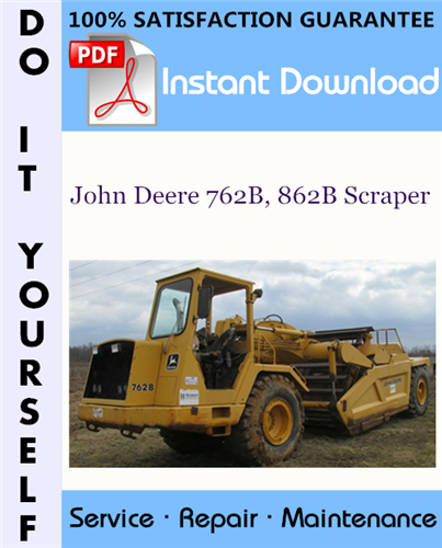 This is the COMPLETE factory Repair Technical Manual for the John Deere 762B, 862B Scraper. This manual is very detailed and contains information and data to this model. has specs, diagrams, and actual real photo illustrations, and schemes. which give you complete step by step operations on repair, assembly, disassembly, Diagnosing, servicing, technical maintenance & troubleshooting procedures for your machine.