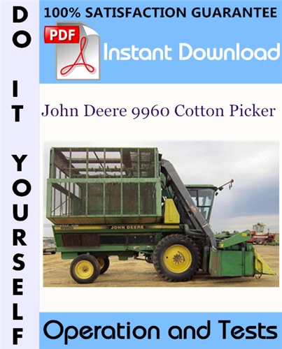 This is the COMPLETE factory Operation and Tests Technical Manual for the John Deere 9960 Cotton Picker. This manual contains detailed operation and tests information, technical service instructions, fitting instructions, technical specifications, illustrations and diagrams, step by step instructions, troubleshoot and other additional information for your machine.