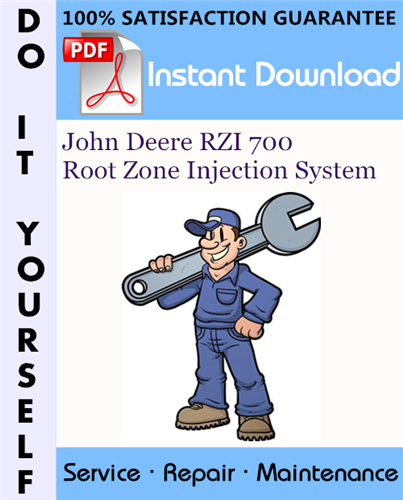 This is the COMPLETE factory Service Repair Workshop Manual for the John Deere RZI 700 Root Zone Injection System. This manual is designed to be a handy reference guide to maintaining and repairing your John Deere RZI 700 Root Zone Injection System.