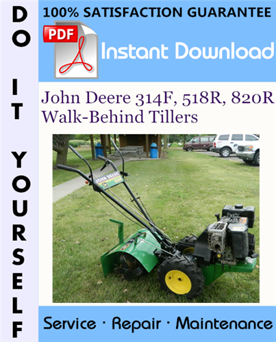 This is the COMPLETE factory Technical Manual for the John Deere 314F, 518R, 820R Walk-Behind Tillers. This manual is very detailed and contains information and data to this model. has specs, diagrams, and actual real photo illustrations, and schemes. which give you complete step by step operations on repair, assembly, disassembly, Diagnosing, servicing, technical maintenance & troubleshooting procedures for your machine.