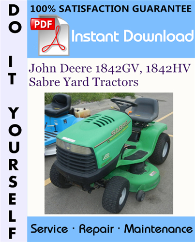 This is the COMPLETE factory Technical Manual for the John Deere 1842GV, 1842HV Sabre Yard Tractors. This manual is very detailed and contains information and data to this model. has specs, diagrams, and actual real photo illustrations, and schemes. which give you complete step by step operations on repair, assembly, disassembly, Diagnosing, servicing, technical maintenance & troubleshooting procedures for your machine.