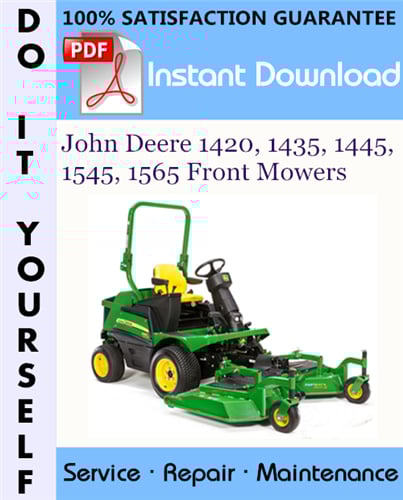 This is the COMPLETE factory Technical Manual for the John Deere 1420, 1435, 1445, 1545, 1565 Front Mowers. This manual is very detailed and contains information and data to this model. has specs, diagrams, and actual real photo illustrations, and schemes. which give you complete step by step operations on repair, assembly, disassembly, Diagnosing, servicing, technical maintenance & troubleshooting procedures for your machine.