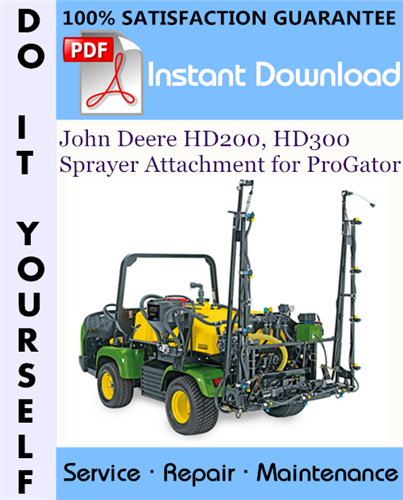 This is the COMPLETE factory Service Repair Workshop Manual for the John Deere HD200, HD300 Sprayer Attachment for ProGator. This manual is designed to be a handy reference guide to maintaining and repairing your John Deere HD200, HD300 Sprayer Attachment for ProGator.