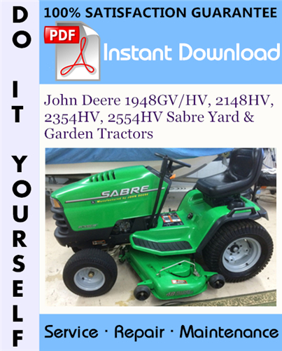 This is the COMPLETE factory Technical Manual for the John Deere 1948GV/HV, 2148HV, 2354HV, 2554HV Sabre Yard & Garden Tractors. This manual is very detailed and contains information and data to this model. has specs, diagrams, and actual real photo illustrations, and schemes. which give you complete step by step operations on repair, assembly, disassembly, Diagnosing, servicing, technical maintenance & troubleshooting procedures for your machine.