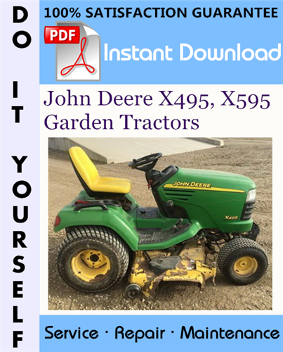 This is the COMPLETE factory Technical Manual for the John Deere X495, X595 Garden Tractors. This manual is very detailed and contains information and data to this model. has specs, diagrams, and actual real photo illustrations, and schemes. which give you complete step by step operations on repair, assembly, disassembly, Diagnosing, servicing, technical maintenance & troubleshooting procedures for your machine.