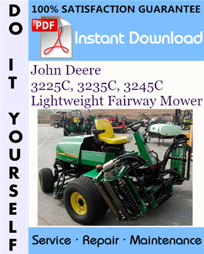 This is the COMPLETE factory Technical Manual for the John Deere 3225C, 3235C, 3245C Lightweight Fairway Mower. This manual is very detailed and contains information and data to this model. has specs, diagrams, and actual real photo illustrations, and schemes. which give you complete step by step operations on repair, assembly, disassembly, Diagnosing, servicing, technical maintenance & troubleshooting procedures for your machine.