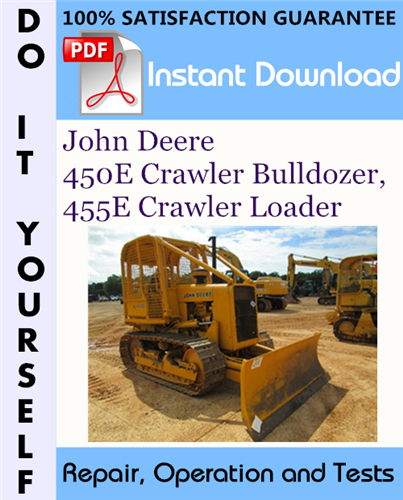 This is the COMPLETE factory Repair, Operation and Tests Technical Manual for the John Deere 450E Crawler Bulldozer, 455E Crawler Loader. This manual contains detailed operation and tests information, repair and diagnostics, technical service instructions, fitting instructions, technical specifications, illustrations and diagrams, step by step instructions, troubleshoot and other additional information for your machine.