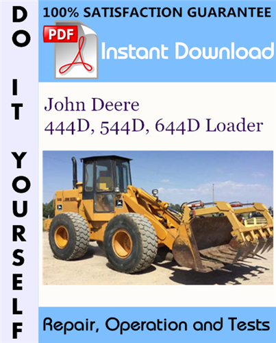 This is the COMPLETE factory Repair, Operation and Tests Technical Manual for the John Deere 444D, 544D, 644D Loader. This manual contains detailed operation and tests information, repair and diagnostics, technical service instructions, fitting instructions, technical specifications, illustrations and diagrams, step by step instructions, troubleshoot and other additional information for your machine.
