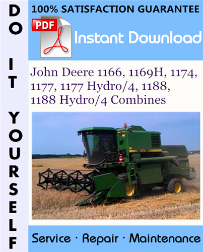 This is the COMPLETE factory Technical Manual for the John Deere 1166, 1169H, 1174, 1177, 1177 Hydro/4, 1188, 1188 Hydro/4 Combines. This manual is very detailed and contains information and data to this model. has specs, diagrams, and actual real photo illustrations, and schemes. which give you complete step by step operations on repair, assembly, disassembly, Diagnosing, servicing, technical maintenance & troubleshooting procedures for your machine.