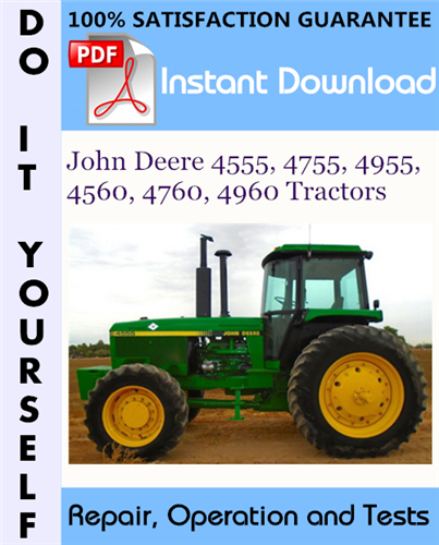 This is the COMPLETE factory Repair, Operation and Tests Technical Manual for the John Deere 4555, 4755, 4955, 4560, 4760, 4960 Tractors. This manual contains detailed operation and tests information, repair and diagnostics, technical service instructions, fitting instructions, technical specifications, illustrations and diagrams, step by step instructions, troubleshoot and other additional information for your machine.