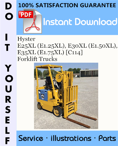 This is the COMPLETE Parts Manual for the Hyster E25XL (E1.25XL), E30XL (E1.50XL), E35XL (E1.75XL) [C114] Forklift Trucks. This manual contains all the information you need to properly replace parts on your Hyster E25XL (E1.25XL), E30XL (E1.50XL), E35XL (E1.75XL) [C114] Forklift Trucks. Filled with illustrations and all part numbers. with step-by-step instruction & highly detailed exploded pictures & diagrams to show you how to complete the required job correctly & efficiently. Its the same type of Manual that your local Dealer/Mechanic would use.