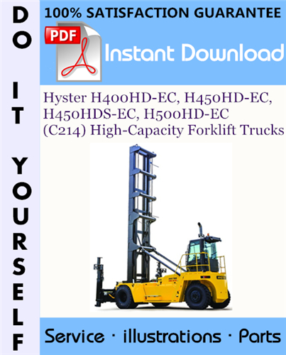 This is the COMPLETE Parts Manual for the Hyster H400HD-EC, H450HD-EC, H450HDS-EC, H500HD-EC (C214) High-Capacity Forklift Trucks. This manual contains all the information you need to properly replace parts on your Hyster H400HD-EC, H450HD-EC, H450HDS-EC, H500HD-EC (C214) High-Capacity Forklift Trucks. Filled with illustrations and all part numbers. with step-by-step instruction & highly detailed exploded pictures & diagrams to show you how to complete the required job correctly & efficiently. Its the same type of Manual that your local Dealer/Mechanic would use.