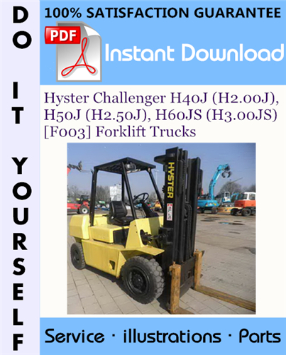 This is the COMPLETE Parts Manual for the Hyster Challenger H40J (H2.00J), H50J (H2.50J), H60JS (H3.00JS) [F003] Forklift Trucks. This manual contains all the information you need to properly replace parts on your Hyster Challenger H40J (H2.00J), H50J (H2.50J), H60JS (H3.00JS) [F003] Forklift Trucks. Filled with illustrations and all part numbers. with step-by-step instruction & highly detailed exploded pictures & diagrams to show you how to complete the required job correctly & efficiently. Its the same type of Manual that your local Dealer/Mechanic would use.