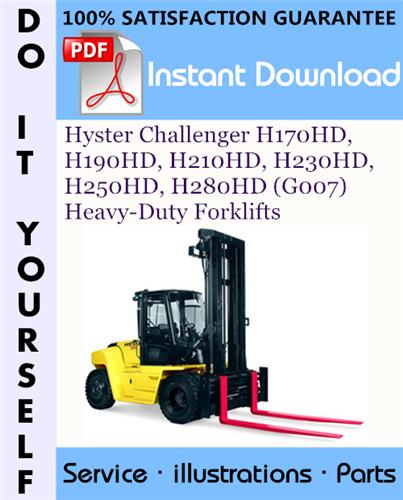 This is the COMPLETE Parts Manual for the Hyster Challenger H170HD, H190HD, H210HD, H230HD, H250HD, H280HD (G007) Heavy-Duty Forklifts. This manual contains all the information you need to properly replace parts on your Hyster Challenger H170HD, H190HD, H210HD, H230HD, H250HD, H280HD (G007) Heavy-Duty Forklifts. Filled with illustrations and all part numbers. with step-by-step instruction & highly detailed exploded pictures & diagrams to show you how to complete the required job correctly & efficiently. Its the same type of Manual that your local Dealer/Mechanic would use.