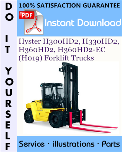 This is the COMPLETE Parts Manual for the Hyster H300HD2, H330HD2, H360HD2, H360HD2-EC (H019) Forklift Trucks. This manual contains all the information you need to properly replace parts on your Hyster H300HD2, H330HD2, H360HD2, H360HD2-EC (H019) Forklift Trucks. Filled with illustrations and all part numbers. with step-by-step instruction & highly detailed exploded pictures & diagrams to show you how to complete the required job correctly & efficiently. Its the same type of Manual that your local Dealer/Mechanic would use.