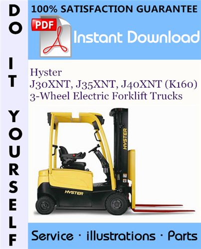 This is the COMPLETE Parts Manual for the Hyster J30XNT, J35XNT, J40XNT (K160) 3-Wheel Electric Forklift Trucks. This manual contains all the information you need to properly replace parts on your Hyster J30XNT, J35XNT, J40XNT (K160) 3-Wheel Electric Forklift Trucks. Filled with illustrations and all part numbers. with step-by-step instruction & highly detailed exploded pictures & diagrams to show you how to complete the required job correctly & efficiently. Its the same type of Manual that your local Dealer/Mechanic would use.