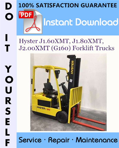 This is the COMPLETE factory Service Repair Workshop Manual for the Hyster J1.60XMT, J1.80XMT, J2.00XMT (G160) Forklift Trucks. This manual is very detailed and contains information and data to this model. has specs, diagrams, and actual real photo illustrations, and schemes. which give you complete step by step operations on repair, assembly, disassembly, Diagnosing, servicing, technical maintenance & troubleshooting procedures for your machine.