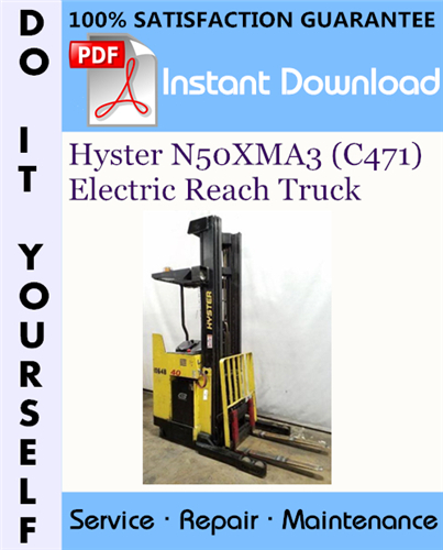 This is the COMPLETE factory Service Repair Workshop Manual for the Hyster N50XMA3 (C471) Electric Reach Truck. This manual is very detailed and contains information and data to this model. has specs, diagrams, and actual real photo illustrations, and schemes. which give you complete step by step operations on repair, assembly, disassembly, Diagnosing, servicing, technical maintenance & troubleshooting procedures for your machine.