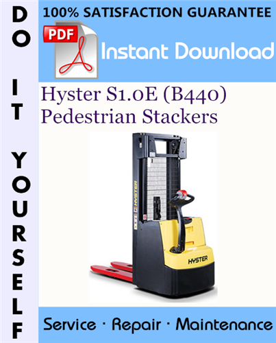 This is the COMPLETE factory Service Repair Workshop Manual for the Hyster S1.0E (B440) Pedestrian Stackers. This manual is very detailed and contains information and data to this model. has specs, diagrams, and actual real photo illustrations, and schemes. which give you complete step by step operations on repair, assembly, disassembly, Diagnosing, servicing, technical maintenance & troubleshooting procedures for your machine.
