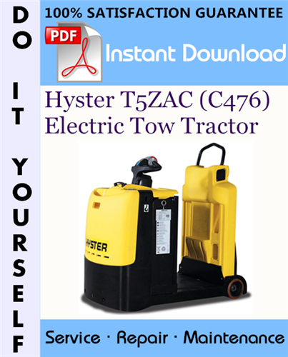 This is the COMPLETE factory Service Repair Workshop Manual for the Hyster T5ZAC (C476) Electric Tow Tractor. This manual is very detailed and contains information and data to this model. has specs, diagrams, and actual real photo illustrations, and schemes. which give you complete step by step operations on repair, assembly, disassembly, Diagnosing, servicing, technical maintenance & troubleshooting procedures for your machine.