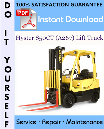 This is the COMPLETE factory Service Repair Workshop Manual for the Hyster S50CT (A267) Lift Truck. This manual is very detailed and contains information and data to this model. has specs, diagrams, and actual real photo illustrations, and schemes. which give you complete step by step operations on repair, assembly, disassembly, Diagnosing, servicing, technical maintenance & troubleshooting procedures for your machine.