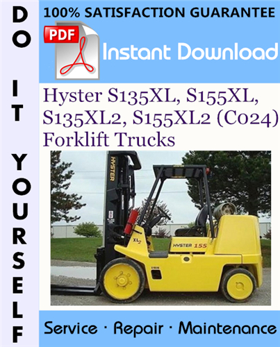 This is the COMPLETE factory Service Repair Workshop Manual for the Hyster S135XL, S155XL, S135XL2, S155XL2 (C024) Forklift Trucks. This manual is very detailed and contains information and data to this model. has specs, diagrams, and actual real photo illustrations, and schemes. which give you complete step by step operations on repair, assembly, disassembly, Diagnosing, servicing, technical maintenance & troubleshooting procedures for your machine.