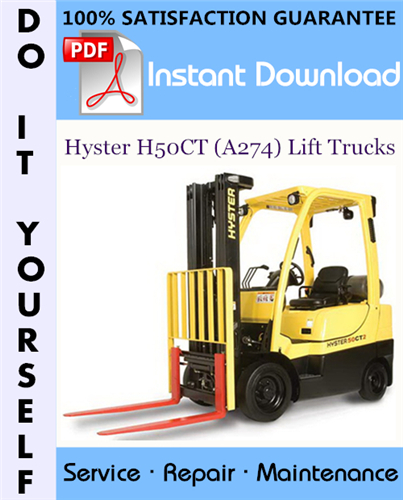 This is the COMPLETE factory Service Repair Workshop Manual for the Hyster H50CT (A274) Lift Trucks. This manual is very detailed and contains information and data to this model. has specs, diagrams, and actual real photo illustrations, and schemes. which give you complete step by step operations on repair, assembly, disassembly, Diagnosing, servicing, technical maintenance & troubleshooting procedures for your machine.