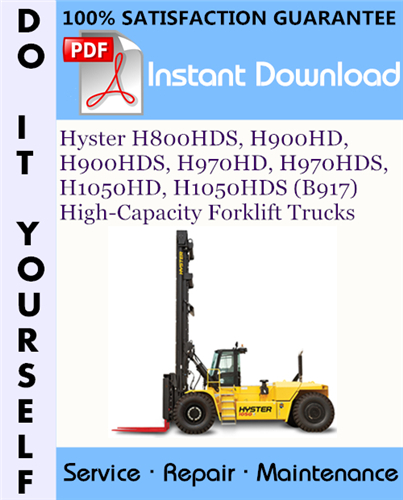 This is the COMPLETE factory Service Repair Workshop Manual for the Hyster H800HDS, H900HD, H900HDS, H970HD, H970HDS, H1050HD, H1050HDS (B917) High-Capacity Forklift Trucks. This manual is very detailed and contains information and data to this model. has specs, diagrams, and actual real photo illustrations, and schemes. which give you complete step by step operations on repair, assembly, disassembly, Diagnosing, servicing, technical maintenance & troubleshooting procedures for your machine.