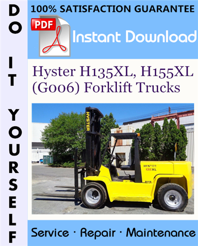 This is the COMPLETE factory Service Repair Workshop Manual for the Hyster H135XL, H155XL (G006) Forklift Trucks. This manual is very detailed and contains information and data to this model. has specs, diagrams, and actual real photo illustrations, and schemes. which give you complete step by step operations on repair, assembly, disassembly, Diagnosing, servicing, technical maintenance & troubleshooting procedures for your machine.