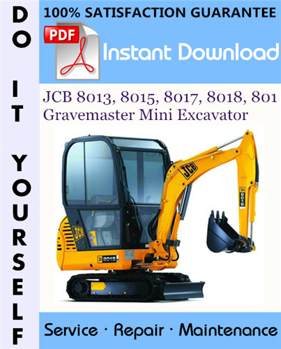 This is the COMPLETE factory Service Repair Workshop Manual for the JCB 8013, 8015, 8017, 8018, 801 Gravemaster Mini Excavator. This manual is very detailed and contains information and data to this model. has specs, diagrams, and actual real photo illustrations, and schemes. which give you complete step by step operations on repair, assembly, disassembly, Diagnosing, servicing, technical maintenance & troubleshooting procedures for your machine.