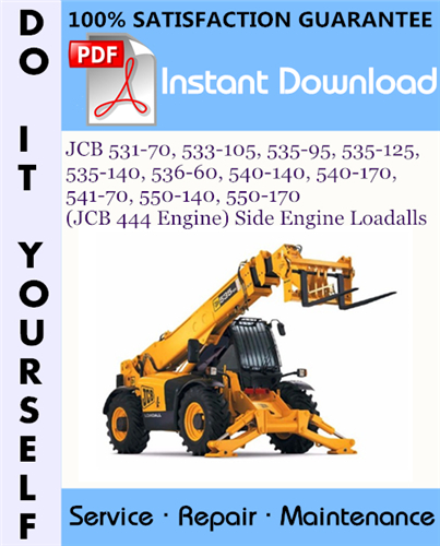 This is the COMPLETE factory Service Repair Workshop Manual for the JCB 531-70, 533-105, 535-95, 535-125, 535-140, 536-60, 540-140, 540-170, 541-70, 550-140, 550-170 (JCB 444 Engine) Side Engine Loadalls. This manual is very detailed and contains information and data to this model. has specs, diagrams, and actual real photo illustrations, and schemes. which give you complete step by step operations on repair, assembly, disassembly, Diagnosing, servicing, technical maintenance & troubleshooting procedures for your machine.
