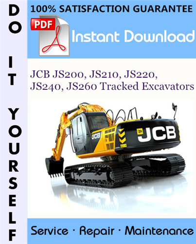 This is the COMPLETE factory Service Repair Workshop Manual for the JCB JS200, JS210, JS220, JS240, JS260 Tracked Excavators. This manual is very detailed and contains information and data to this model. has specs, diagrams, and actual real photo illustrations, and schemes. which give you complete step by step operations on repair, assembly, disassembly, Diagnosing, servicing, technical maintenance & troubleshooting procedures for your machine.