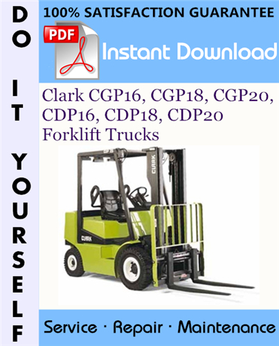 This is the COMPLETE factory Service Repair Workshop Manual for the Clark CGP16, CGP18, CGP20, CDP16, CDP18, CDP20 Forklift Trucks. This manual is very detailed and contains information and data to this model. has specs, diagrams, and actual real photo illustrations, and schemes. which give you complete step by step operations on repair, assembly, disassembly, Diagnosing, servicing, technical maintenance & troubleshooting procedures for your machine.