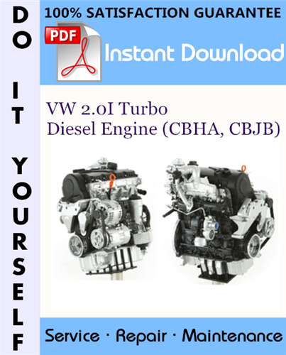 This is the COMPLETE factory Service Repair Workshop Manual for the VW 2.0I Turbo Diesel Engine (CBHA, CBJB). This manual is very detailed and contains information and data to this model. has specs, diagrams, and actual real photo illustrations, and schemes. which give you complete step by step operations on repair, assembly, disassembly, Diagnosing, servicing, technical maintenance & troubleshooting procedures for your machine.