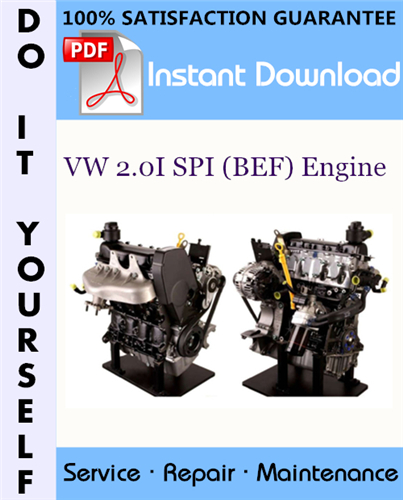 This is the COMPLETE factory Service Repair Workshop Manual for the VW 2.0I SPI (BEF) Engine. This manual is very detailed and contains information and data to this model. has specs, diagrams, and actual real photo illustrations, and schemes. which give you complete step by step operations on repair, assembly, disassembly, Diagnosing, servicing, technical maintenance & troubleshooting procedures for your machine.