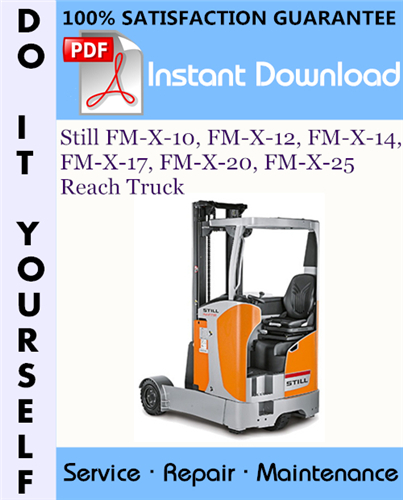 This is the COMPLETE factory Service Repair Workshop Manual for the Still FM-X-10, FM-X-12, FM-X-14, FM-X-17, FM-X-20, FM-X-25 Reach Truck. This manual is very detailed and contains information and data to this model. has specs, diagrams, and actual real photo illustrations, and schemes. which give you complete step by step operations on repair, assembly, disassembly, Diagnosing, servicing, technical maintenance & troubleshooting procedures for your machine.
