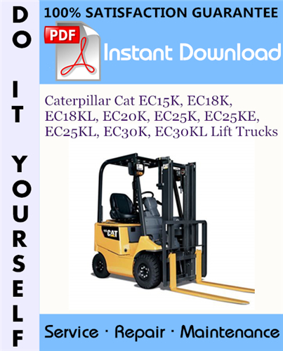 This is the COMPLETE factory Service Repair Workshop Manual for the Caterpillar Cat EC15K, EC18K, EC18KL, EC20K, EC25K, EC25KE, EC25KL, EC30K, EC30KL Lift Trucks. This manual is very detailed and contains information and data to this model. has specs, diagrams, and actual real photo illustrations, and schemes. which give you complete step by step operations on repair, assembly, disassembly, Diagnosing, servicing, technical maintenance & troubleshooting procedures for your machine.