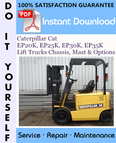 This is the COMPLETE factory Service Repair Workshop Manual for the Caterpillar Cat EP20K, EP25K, EP30K, EP35K Lift Trucks Chassis, Mast & Options. This manual is designed to be a handy reference guide to maintaining and repairing your Caterpillar Cat EP20K, EP25K, EP30K, EP35K Lift Trucks Chassis, Mast & Options.