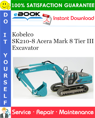 This is the COMPLETE Service Repair Manual for the Kobelco SK210-8 Acera Mark 8 Tier III Excavator. It contains deep information about maintaining, assembly, disassembly and servicing your Kobelco SK210-8 Acera Mark 8 Tier III Excavator.