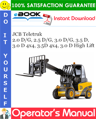 This is the COMPLETE Operators Manual for the JCB Teletruk 2.0 D/G, 2.5 D/G, 3.0 D/G, 3.5 D, 3.0 D 4x4, 3.5D 4x4, 3.0 D High Lift.
