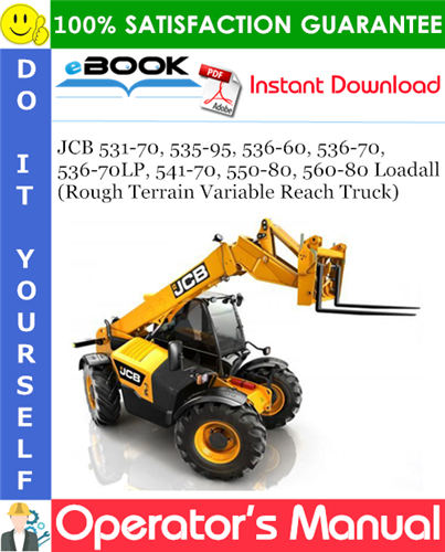 This is the COMPLETE Operators Manual for the JCB 531-70, 535-95, 536-60, 536-70, 536-70LP, 541-70, 550-80, 560-80 Loadall (Rough Terrain Variable Reach Truck).